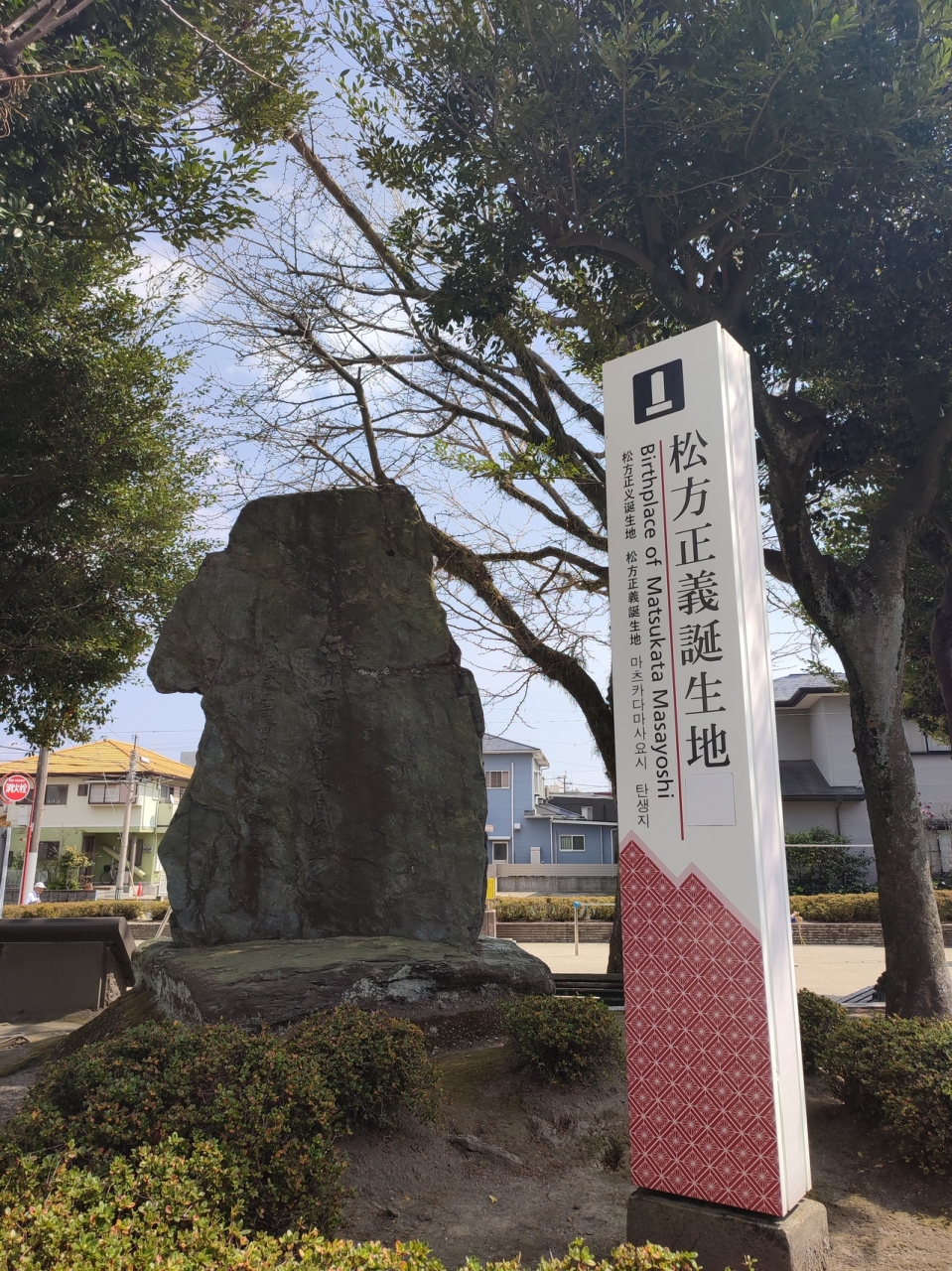 路面電車の武之橋駅が最寄りです。氏の名称がついた松方公園という公園にあります。松方正義之像というものあり、北にいった甲突川沿いにあります。大蔵大臣を長期間務めて日本銀行を設立した人物です。金本位制を確立するなど、今の意味のない異次元緩和する人間に爪の垢でも飲ませたいです。
