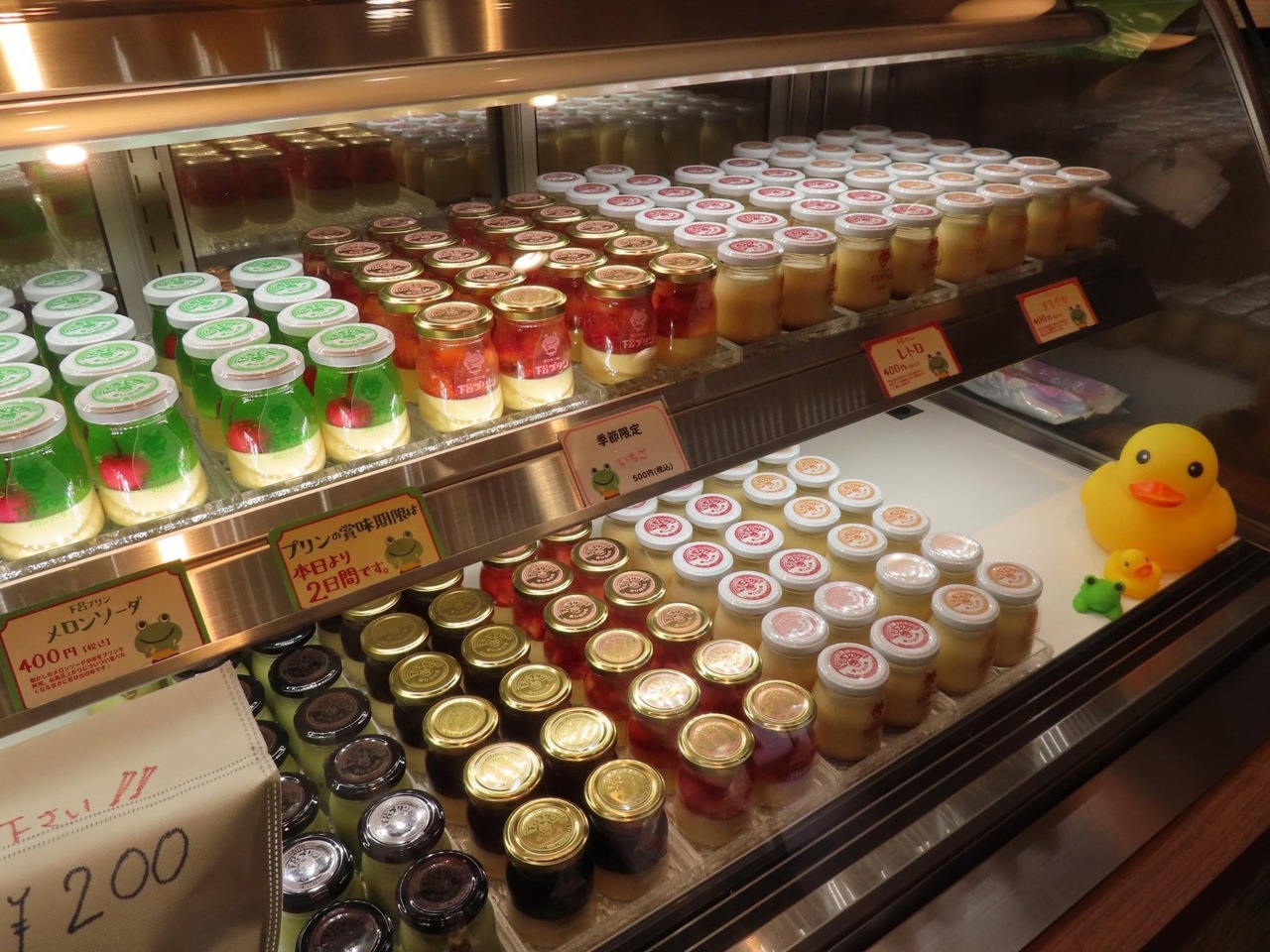 大きなカエルちゃんが目印のプリン屋さん。オープンと同時に来店。期間限定のいちごプリンとメロンソーダをいただきました。