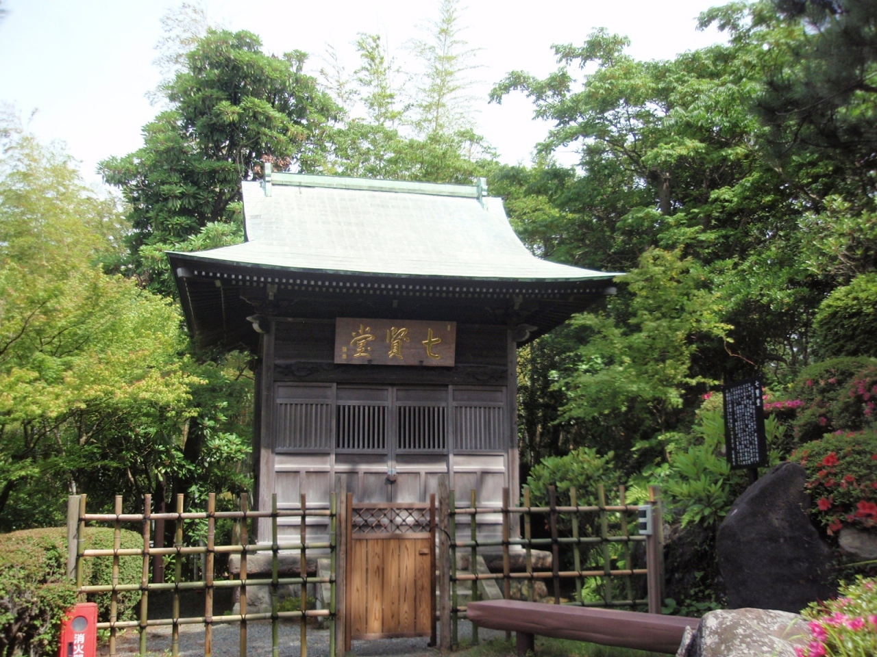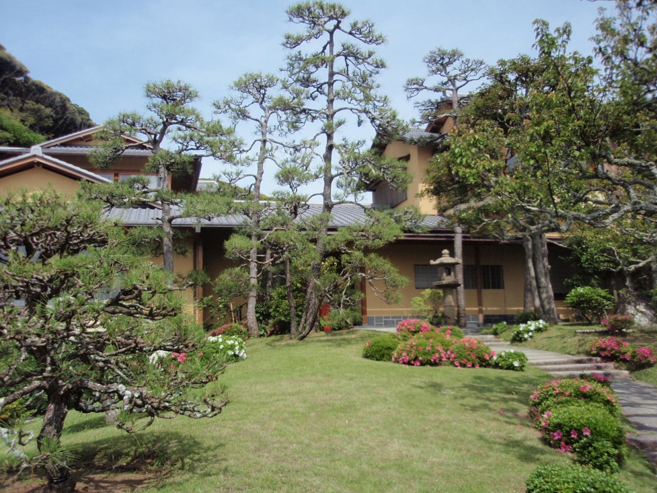 し、吉田茂も死後に合祀され七賢堂となりました)、吉田茂像、サンルーム等が見られます。高台にある広い敷地の中に、池泉回遊式庭園、海や箱根の山々が見渡せる展望所、バラ園等素晴らしいロケーションと環境に住んでおられた。さすが昭和の大政治家の住まいだと感心しました「日時」2021年5月26日