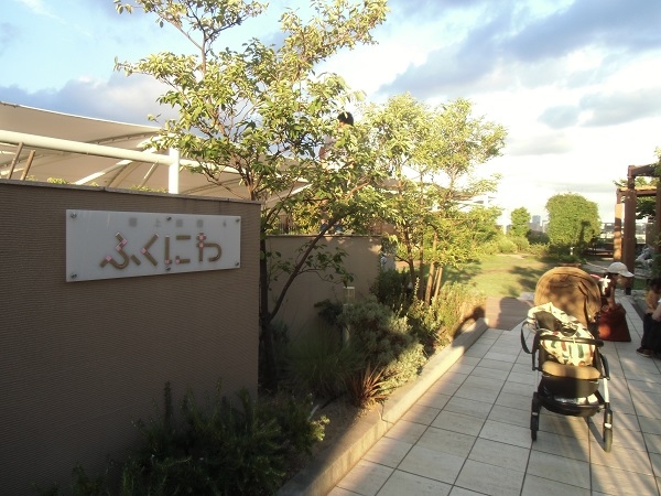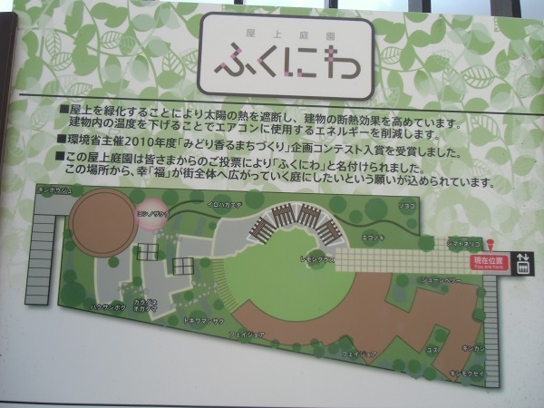 緑を敷き詰めた屋上庭園で、風が心地よいのか、夏の夕刻、けっこう人がいて、ベンチで休んだりしていました。