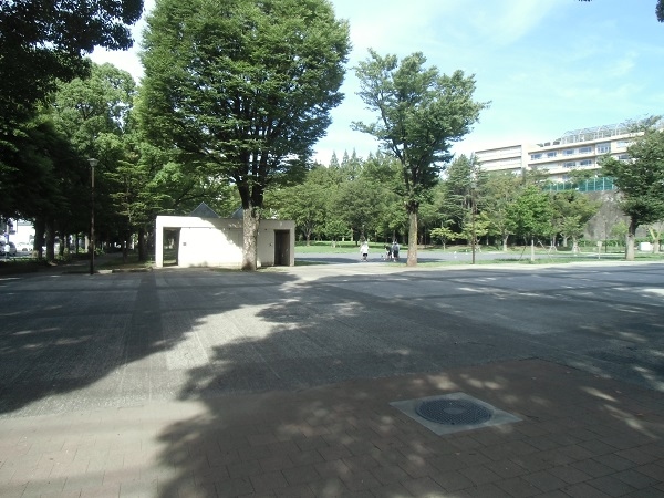 遊具はなく、草地と砂地とコンクリートの広場だけの公園です。