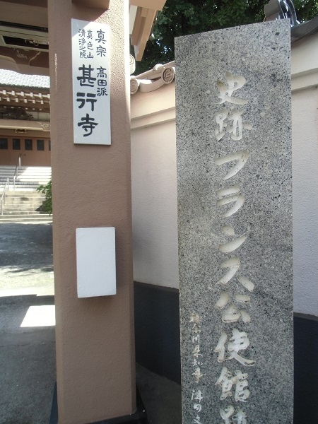 説明板によると、幕末の神奈川開港当時、寺の本堂は土蔵造りでしたが、改造を加えてフランス公使館に充てられたといわれています。