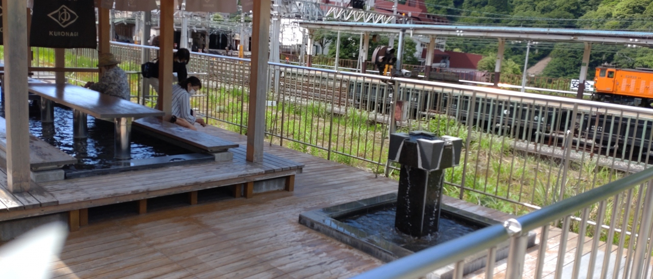 富山地方鉄道宇奈月温泉駅にあります。足湯は駅の中からも外からも利用出来きます。外からの利用は、道路に面しており気軽に利用できます。建物は立派で大きく 周りはひらけていて明るく見晴らしがよく、列車を眺めることができ気持ちがいいです。手湯もあるので、時間がない人は手だけでもどうですか?