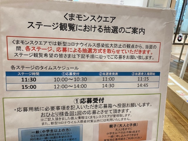 自分も申込ましたがハズレ。でもくまモンタイム以外は入る事ができグッズも売っており、くまモンの執務室も見る事ができます。
