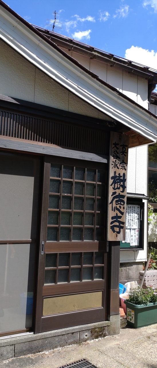 宇奈月温泉街の入口近く、「足湯おもかげ」の斜め向かいにあります。温泉街をぶらぶら散策していると、境内もなく突然建物が現れると言った感じです。隣は、薬師寺です。「聖徳太子堂」と彫られた石柱が目立ってます。聖徳太子との関係は、見渡せどわかりませんでした。道路に面した網戸からは「ふるさと」の唱歌が流れていました。中には人はいません。地元密着のお寺に感じました。