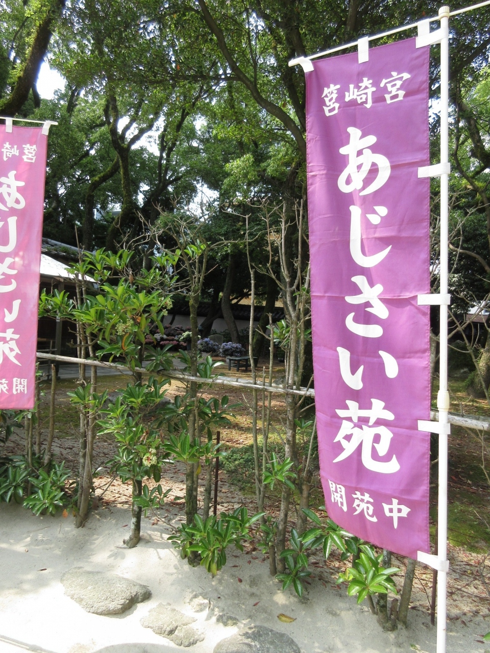 その境内の一番奥にあるのが、この「あじさい園」ですが、お邪魔した5月末は、まさに見頃でした。