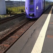 261系という特急車両が使用され、この日はラベンダー車両という車両での運転でした。