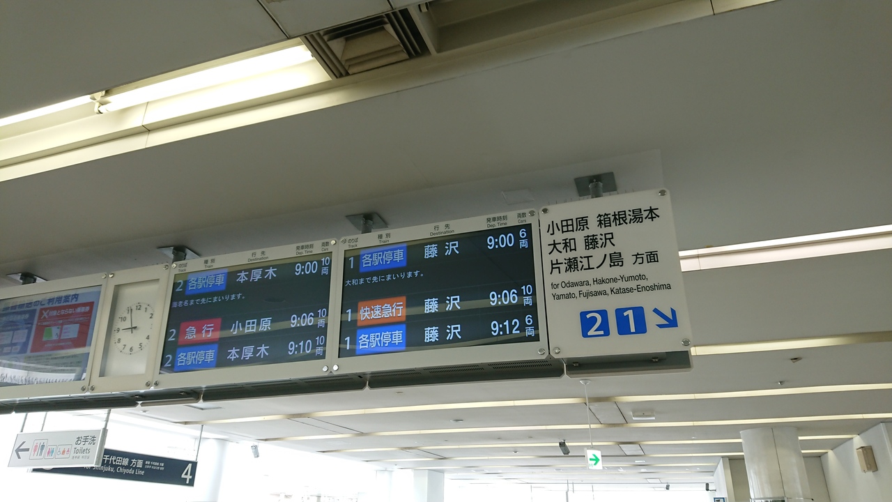 乗車した時間帯の相模大野~藤沢間は各駅停車が38分に対して、快速急行は22分と圧倒的に快速急行が速く、20分に1本の快速急行にあわせて移動すると快適だと感じました。