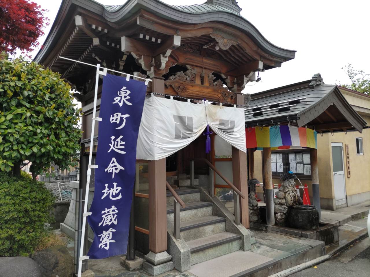 富山市電を西町電停で降りて、アーケードの中央通りを東に10数分歩いて、雪見通りを横断して数分のところに石倉町延命地蔵尊と、その川向うに泉町子宝延命地蔵尊があります。いずれも立山連峰から地下を流れてきた豊富な湧き水が湧出しています。両地蔵尊に旅の安全と長寿を祈願した後、湧き水を飲んでリフレッシュして旅を続けました。