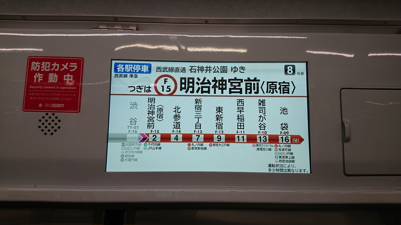 渋谷から乗った列車は各駅停車石神井公園行で東急の電車でした。