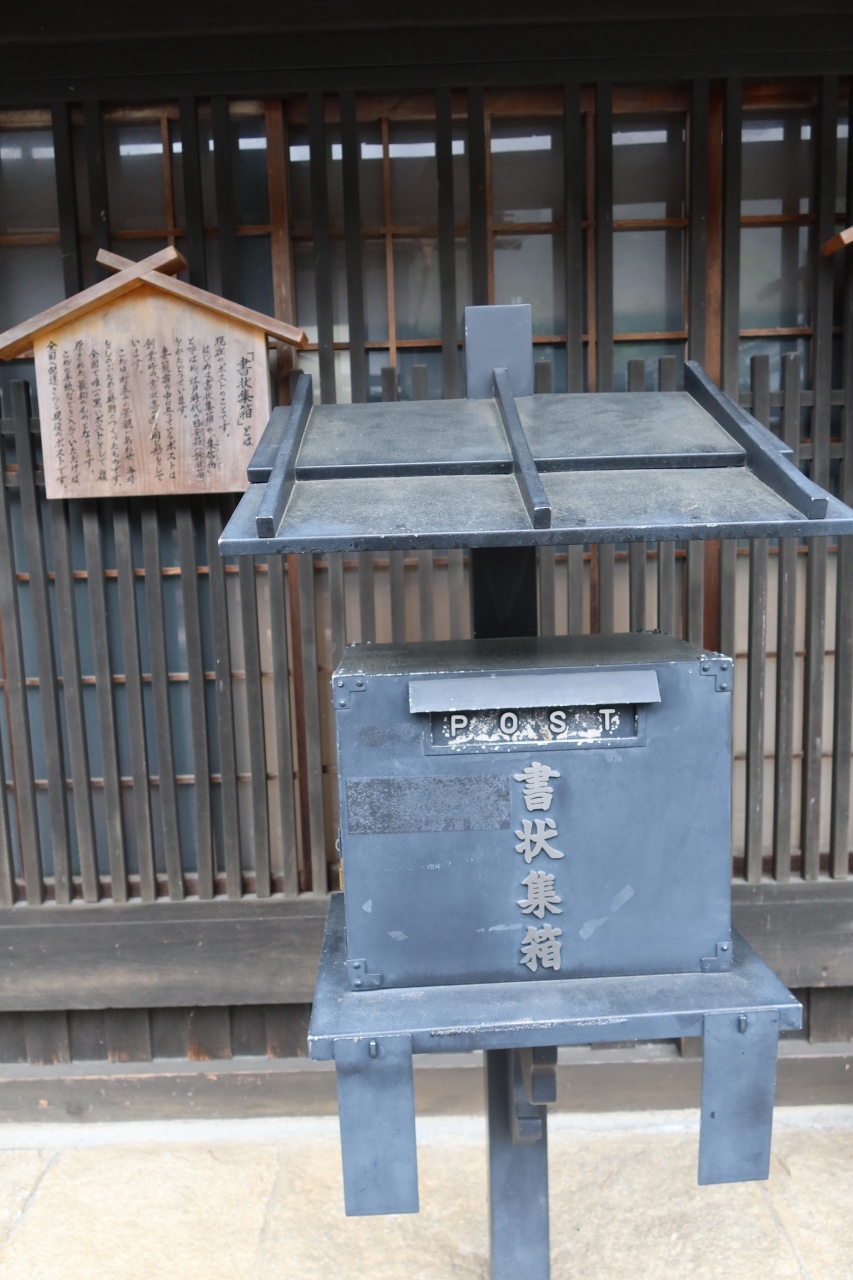 郵便局の前には明治期の黒い郵便ポスト(現役)が置かれ、格子窓の建物と言い、古風な造りの郵便局は妻籠宿にピッタリです。