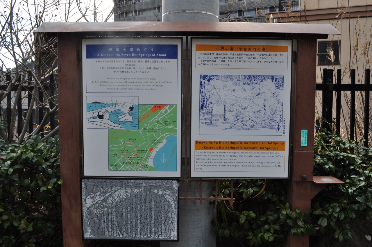 2022年1月に熱海に観光に行った際に立ち寄りました。JR来宮駅から徒歩10分ほどの場所にあります。小沢の湯 (平左衛門の湯)は熱海七湯の一つに数えられる源泉になります。ここでは温泉卵をつくることが出来るようで、トングと軍手が置かれていました。訪問した時は誰もいなかったのですが、温泉卵つくるのに何分かかるんでしょうね。何組も来たら相当待ちそうな気がします。まぁ、こういった場所を無料で使えるというのは嬉しいですね。