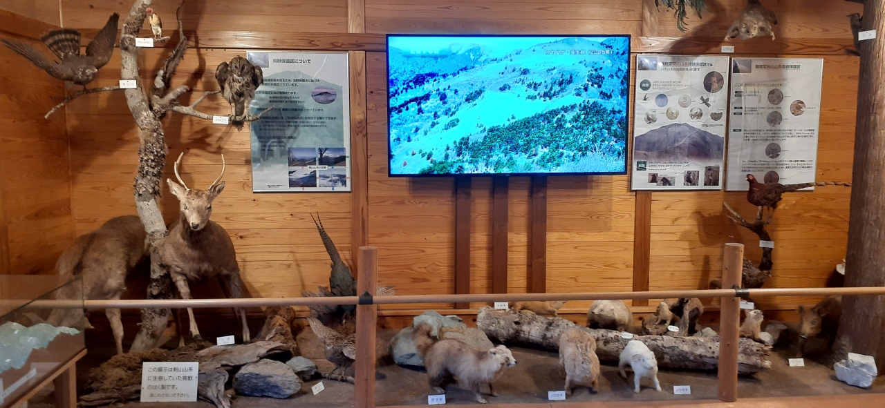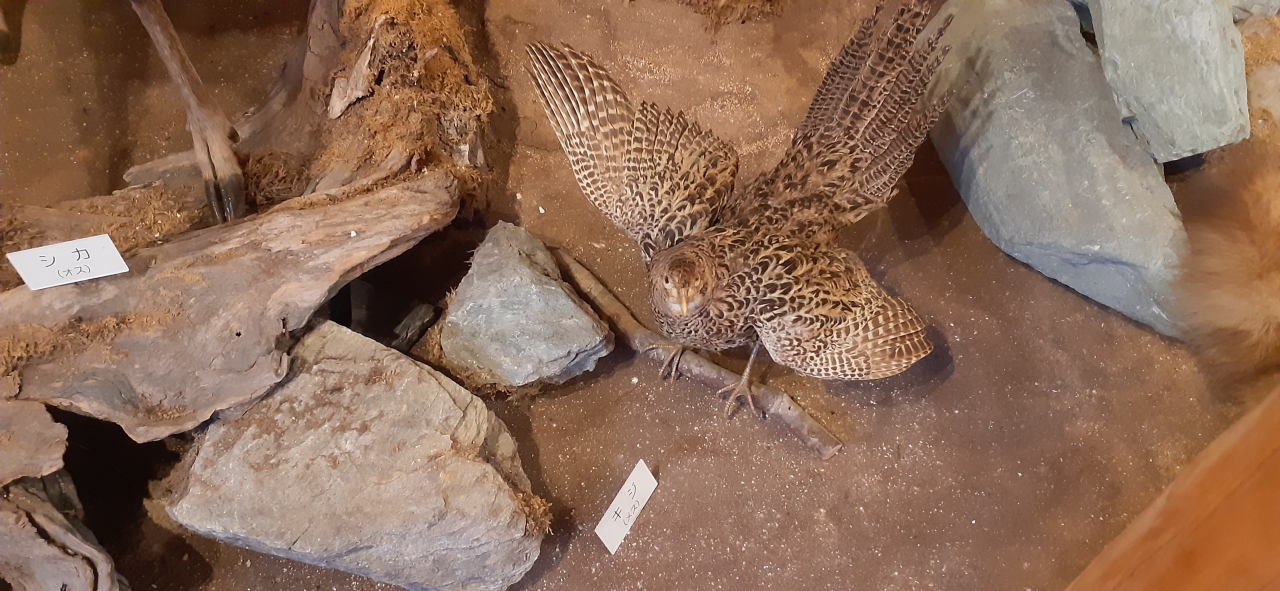 中に入ると、たくさんの動物や鳥のはく製がありました。