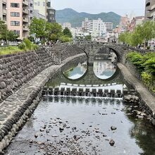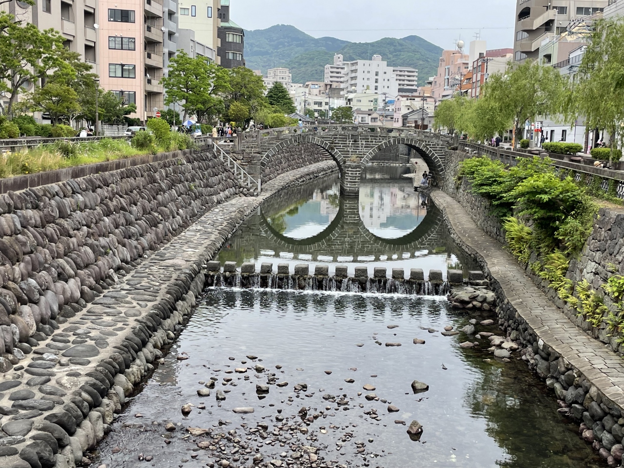 1634年に興福寺の黙子如定禅師によって架けられました。中島川に架かる日本最古のアーチ型石橋で、観光名所としても有名です。中島川にはいくつも橋が架かり、周辺も整備されていて雰囲気も良いです。商店街やお土産店、カフェなども近くにあるのでのんびり散策できます。