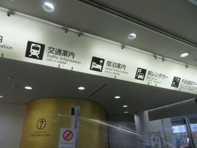 博多駅の改札口を出てすぐにあるインフォメーションです。レンタカーの受付までしているので、当然忙しそうでした。レンタカーは切り離して別にするべきだと思いました。こちらでゲットしたカラーの博多市内の地図は、非常に分かりやすかったです。まずこれを手に入れましょう。