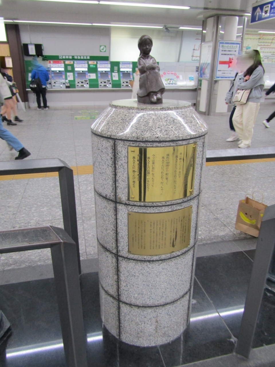 人通りの多い横浜駅中央通路の中央にあり、ガス灯の間に置かれていました。