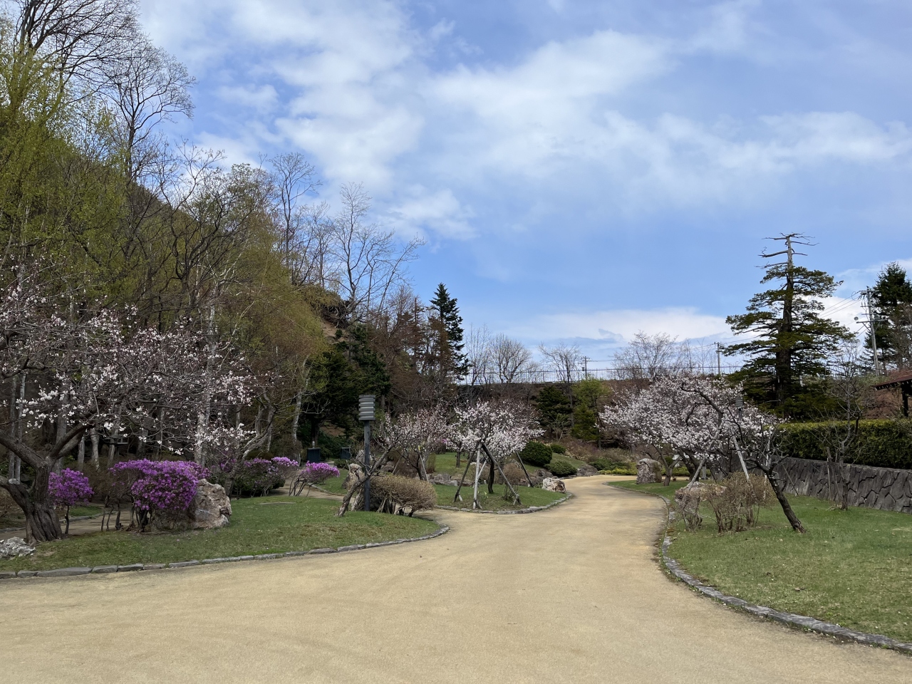 紋別公園に隣接しています。綺麗に整備された日本庭園でした。思っていたよりも広くて見応えがありました。園内ではちょうど梅や桜の花が見頃でした。また、園内には3つの人工の滝があり、景観が良かったです。3つの滝の中で、特に「オホーツクの滝」が落差もあって迫力がありました。