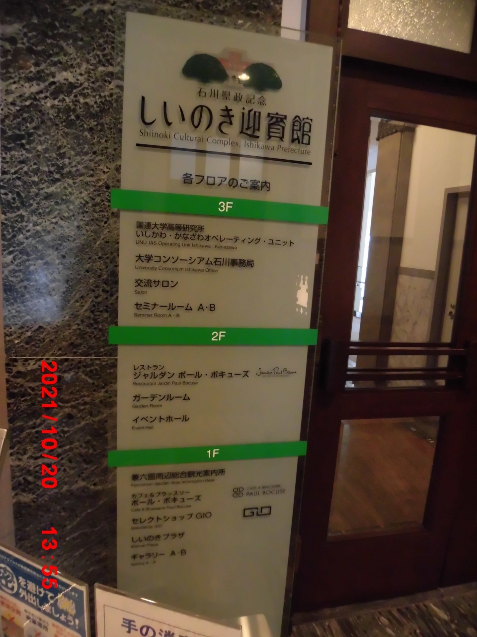 金沢市観光で立ち寄りました。石川県政記念しいのき迎賓館は、アメリカ楓通りの東に広がる広坂緑地のメインの建物で、旧石川県庁の建物と書かれていました。内部には、セミナールームや交流サロン等の他にイベントルームや国連大学高等研究所のかなざわOPユニットなどもありました。