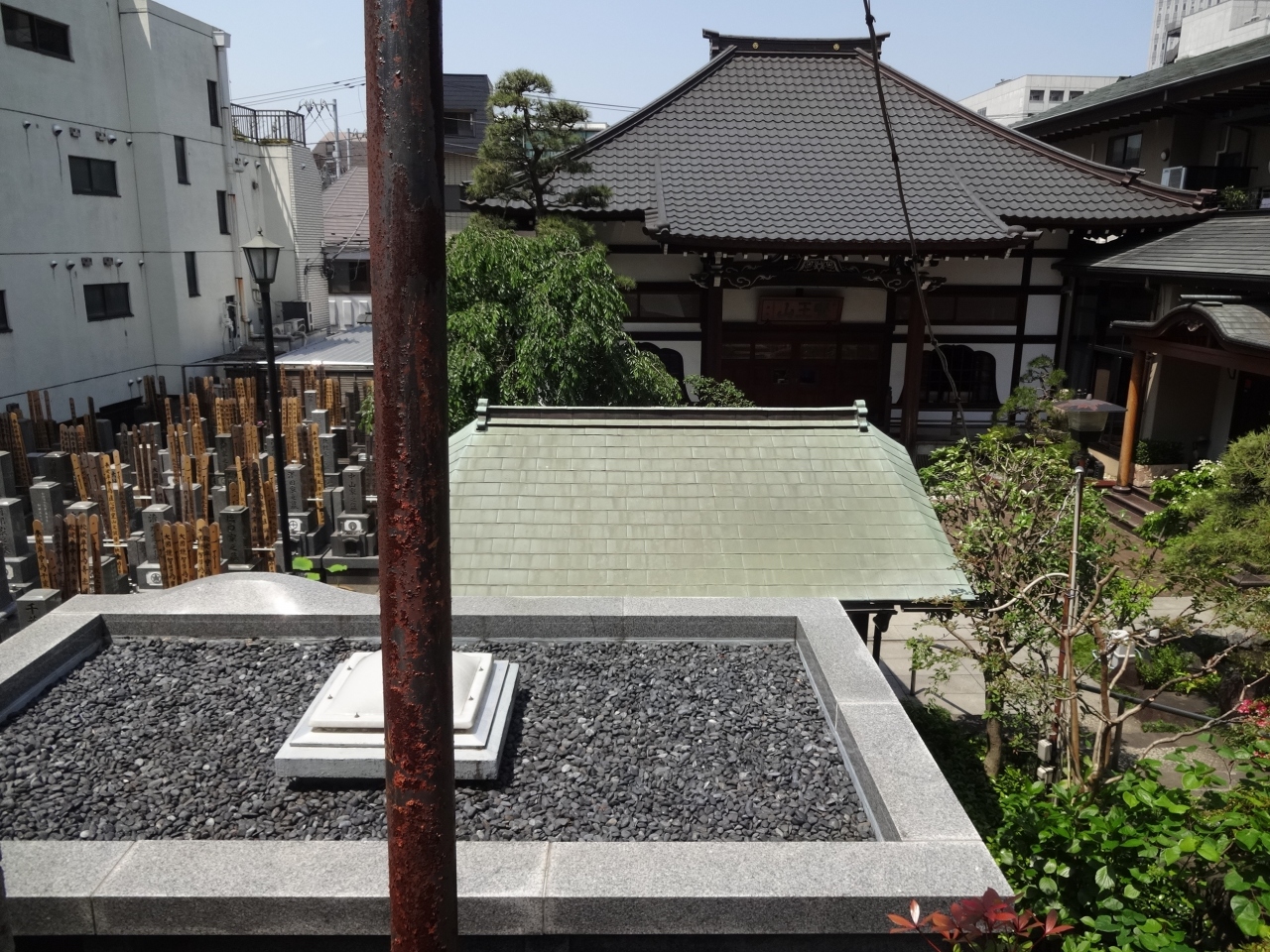 坂道の途中に、入口があるので、階段を降りて本堂に行くことになります。