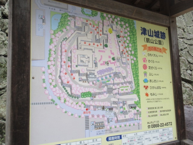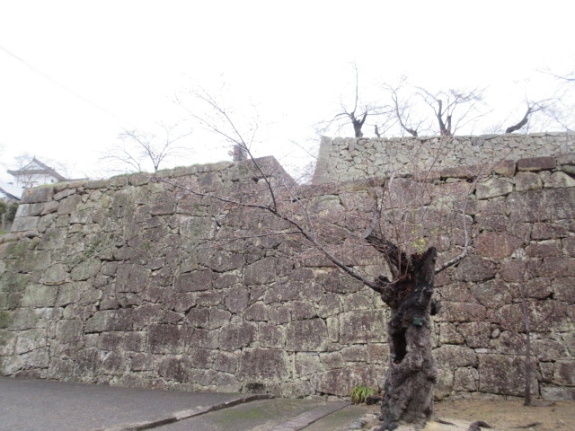 津山にあるお城の跡です。江戸時代に建てられたものですが、明治時代に天守をはじめとする建物は取り壊されてしまったので、現在は石垣などが残っている状態です。とはいえ、桜の木がたくさんあって、ちょっと早かったですが、桜もちらほら咲いていました。
