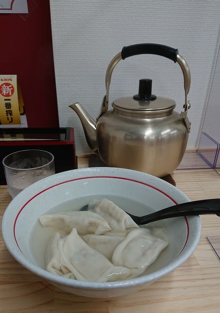 JR宇都宮駅西口方面で2021年5月にオープンしたばかりの新しいお店です。店舗前にはたまたまなのか行列が無くすぐに座ることができました。メニューは焼き餃子と水餃子、アレンジ餃子(おろししそ・タンタンスープ・スパイシーサルサ)がありました。アレンジ餃子も気になりましたが、焼き餃子と水餃子にし、ラー油や酢などでアレンジしながら頂きました。お冷が入っているアルマイト製のやかんが昭和レトロな雰囲気を出していました。
