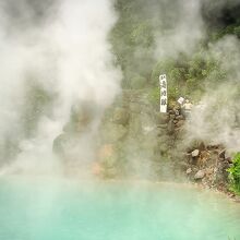 九州横断歩道沿いにある海地獄です。地獄めぐりの中でも1.2をあらそう人気の地獄だと思います。なんといってもあの真っ青な池?地獄?温泉?それが湯けむりの白とまざって、幻想的な雰囲気を醸し出してます。売店も広く綺麗で利用しやすいです。