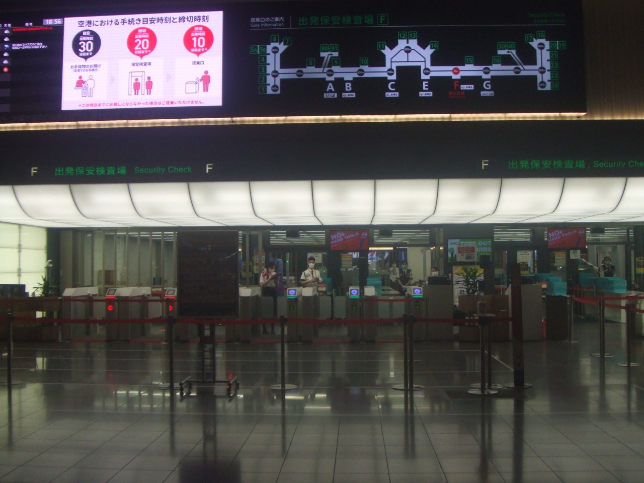 国内線JAL発着ターミナルの第1ですが、ショッピングに食事に休憩場所にと、利用範囲の広いターミナルです。手続き前や到着後の場所は、特にソファーや充電施設が豊富にあり、利用者を大事にした配慮がなされていました。