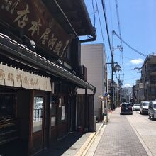 道沿いには「電気鉄道事業発祥の地碑」「西岸寺」「京菓子司 富英堂」などがあり、東突き当りは「鳥せい」があります。観光客の散策路になっていますが車道にもなっていますので注意ください。