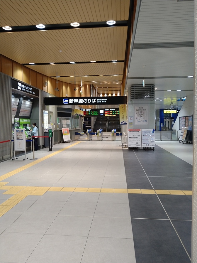 北陸新幹線の駅でまだ新しいため、施設は綺麗で広々しています。平日の夕方でしたが、東京行きに乗車する人が4~5人、構内は閑散としていて静かです。時間を潰すのに周辺を散策しようと思いましたが、お土産売店が2軒あるだけで、外に出ても歩ける範囲にレストランやお店など何もありません。