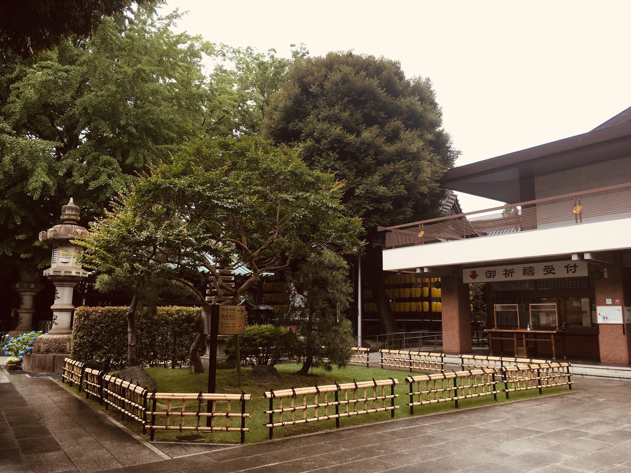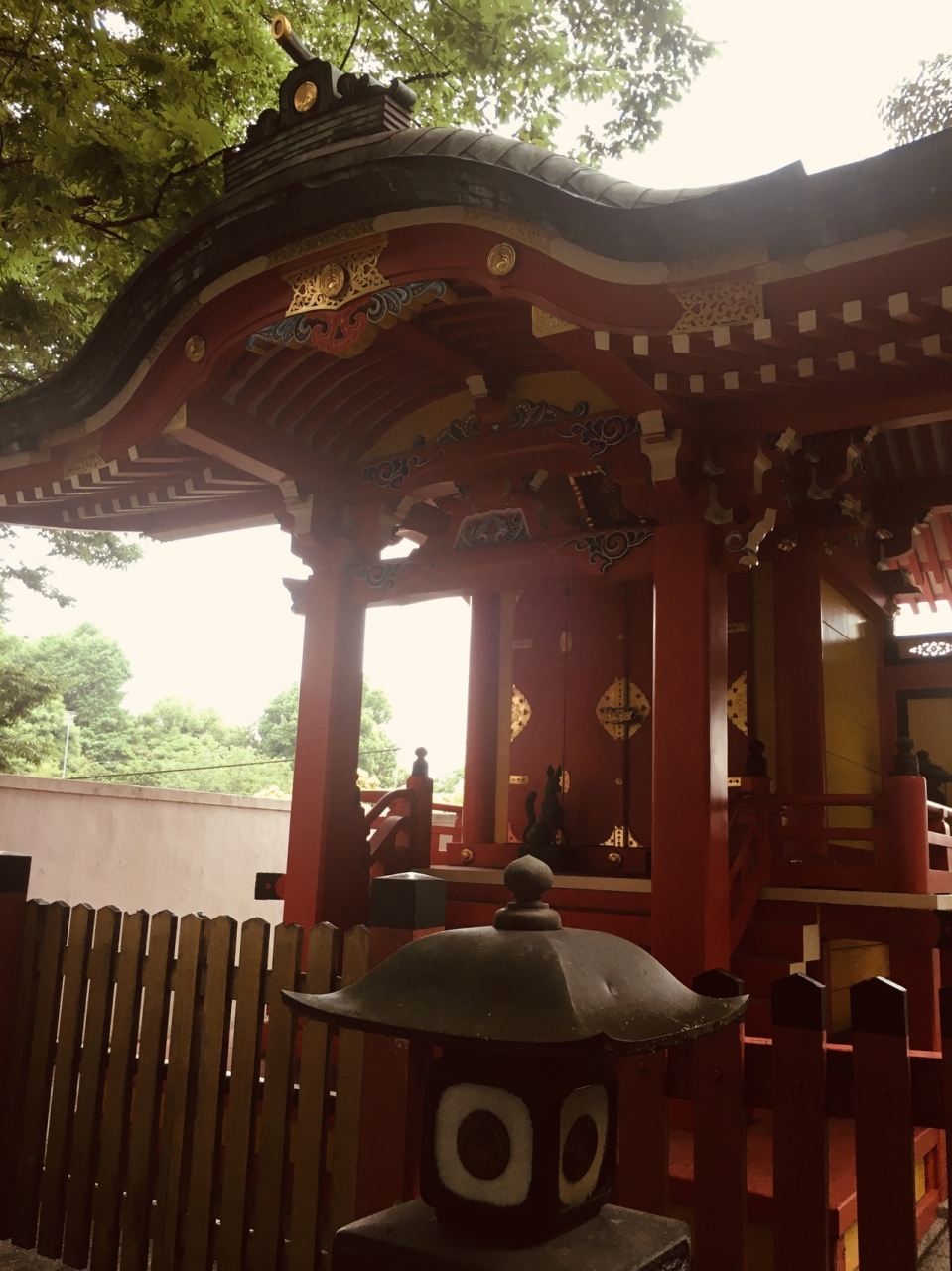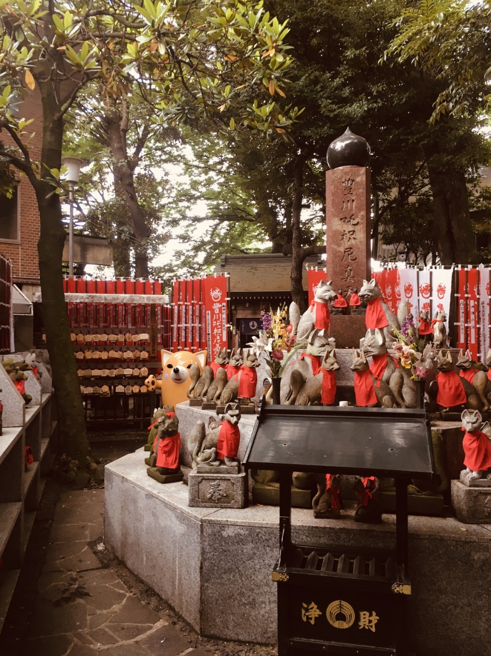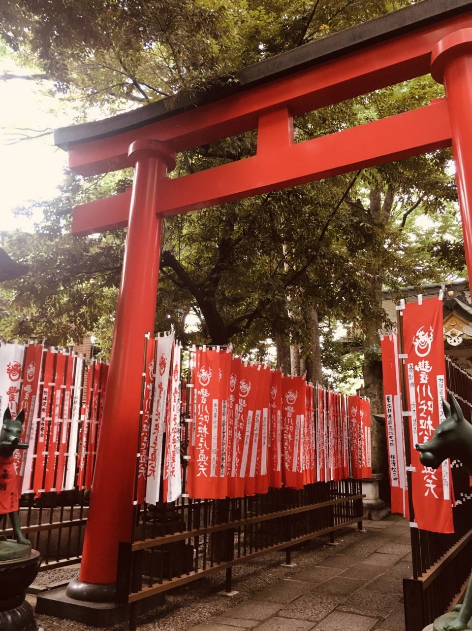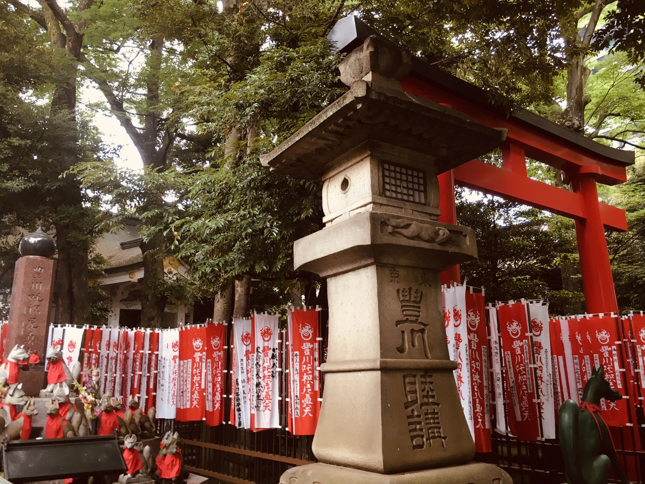 社務所がある近くの門から入ると綺麗な庭になっていました。奥に行くと木々があるためか少し暗めの雰囲気にあり、たくさんの赤と白の幟、狐の像があり、圧巻でした。社殿の裏側には綺麗な水が流れていて落ち着いた雰囲気でした。