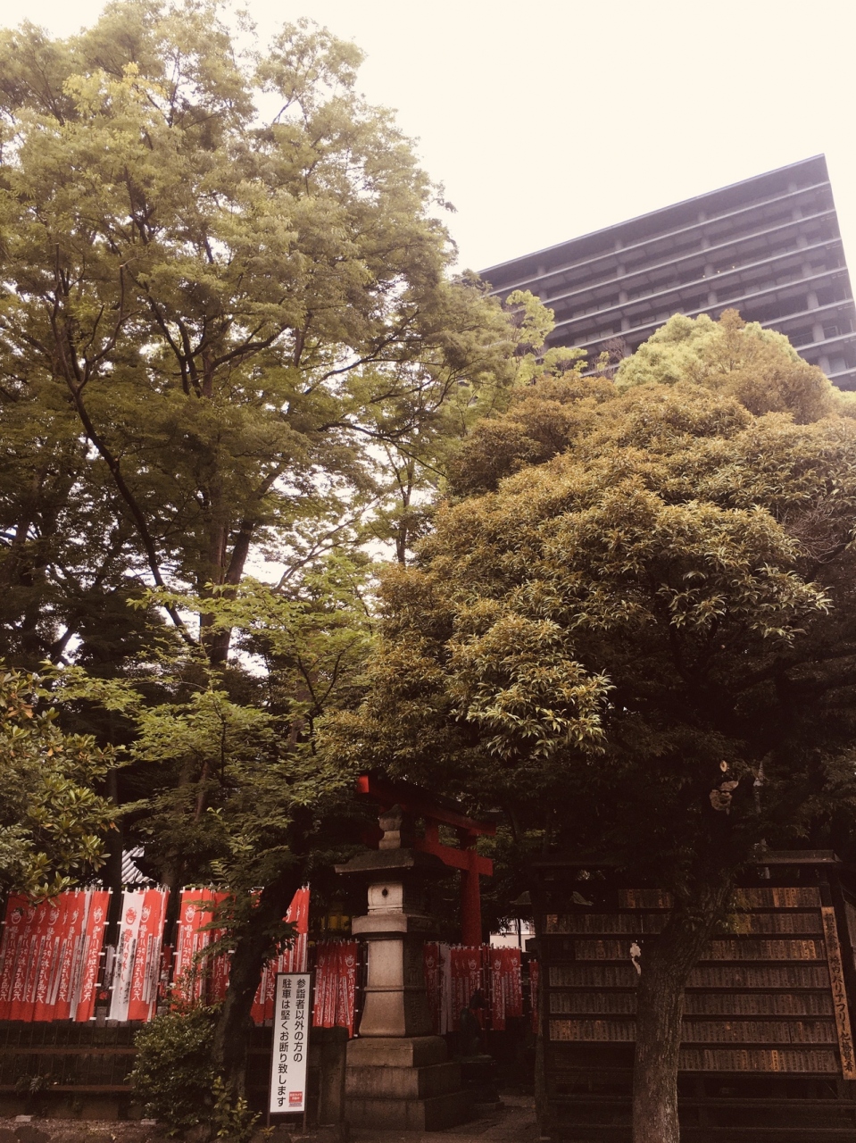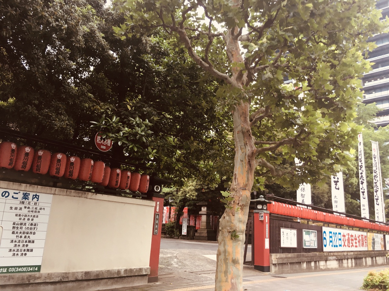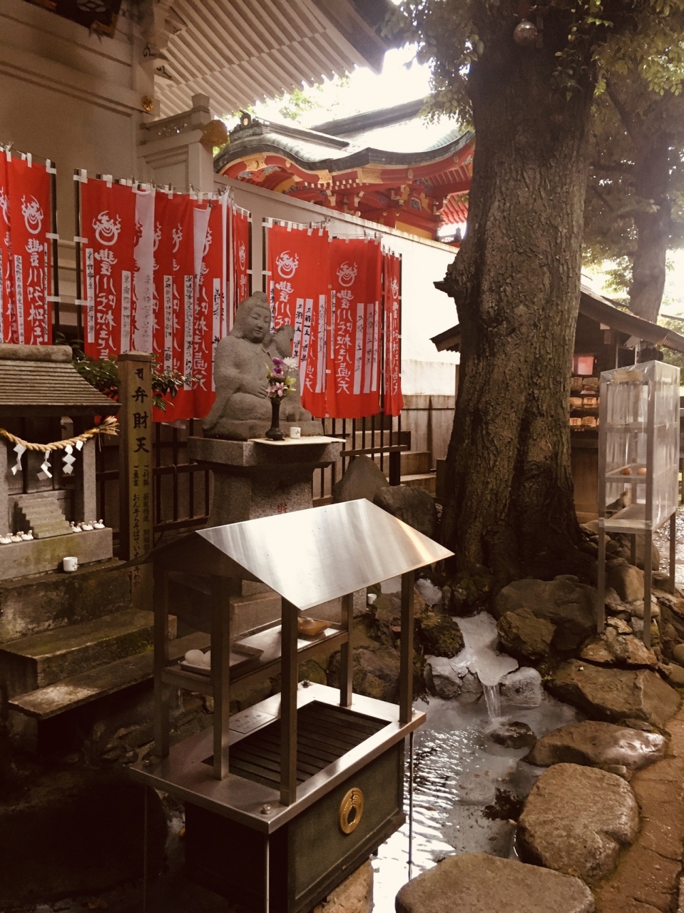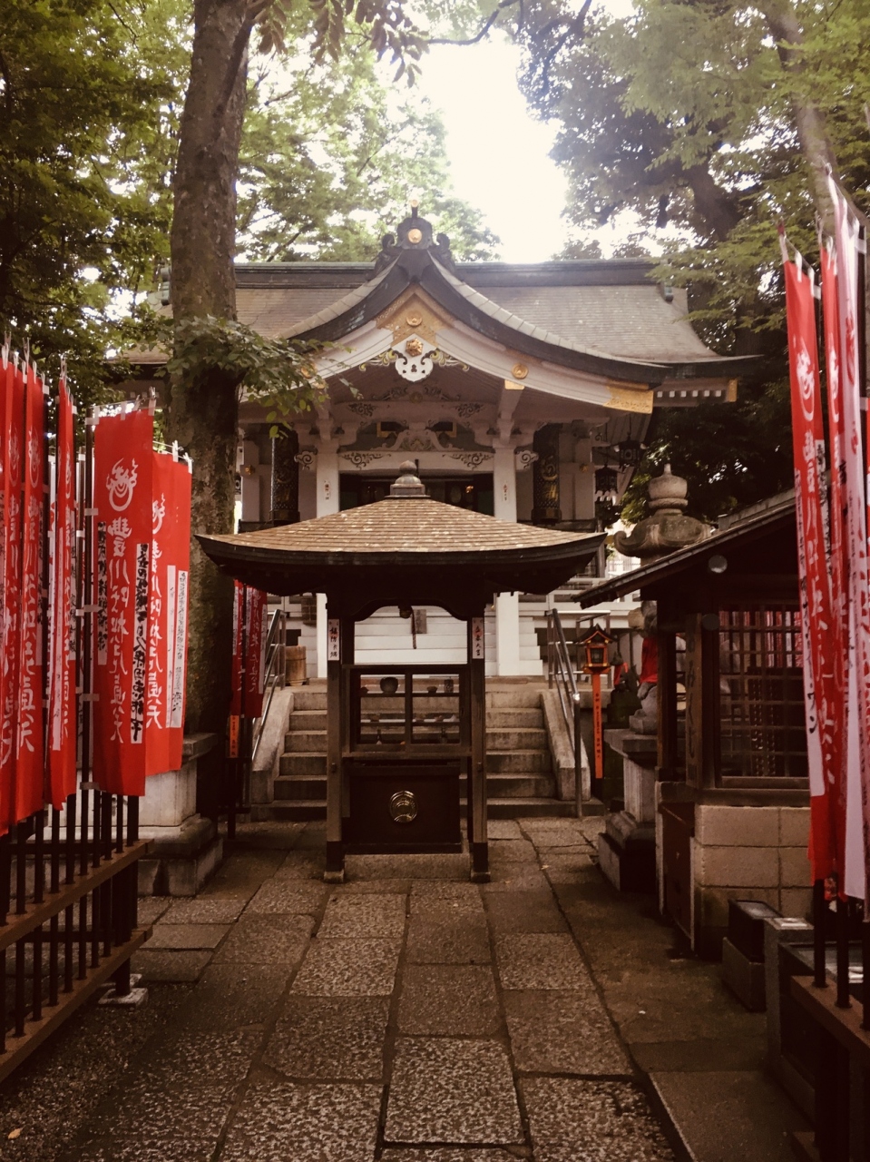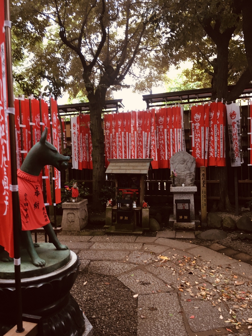 社務所がある近くの門から入ると綺麗な庭になっていました。奥に行くと木々があるためか少し暗めの雰囲気にあり、たくさんの赤と白の幟、狐の像があり、圧巻でした。社殿の裏側には綺麗な水が流れていて落ち着いた雰囲気でした。