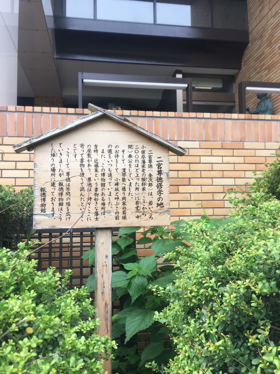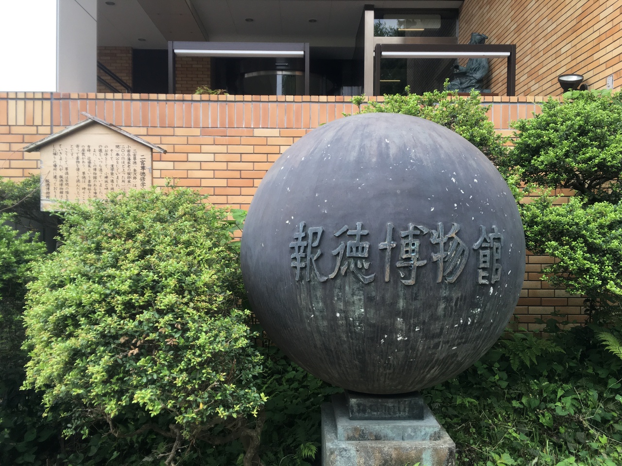 小田原駅東口から徒歩で20分ほどです。報徳二宮神社の道を挟んで南側にあります。ビルの前に球形のオブジェが目印です。江戸末期に小田原(栢山)に生まれ関東圏の財政再建、農村復興に尽力し、向かいの報徳二宮神社の御祭神にもなった人物、その人物と業績を数々の資料などで紹介する博物館です。薪を担いで読書をする像でお馴染みの人物ですが、深い思想家でもあることを学ぶことができました。入館料300円、水、木、金は休館です。写真撮影禁止。