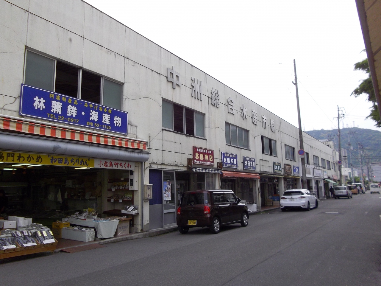 JR徳島駅から南東へ市役所と県庁に挟まれた新町川近くに位置する「中洲市場」は市民の台所として新鮮な魚介類を求めて多くの買い物客が集まり、次第に阿波牛を取り扱う精肉店や飲食店などが集まる市場として発展して来たようです。