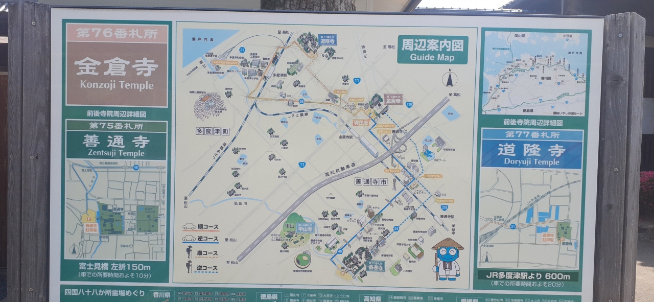 JR土讃線・金蔵寺駅よりすぐです(ちなみに駅名は「蔵」、お寺の名前は「倉」と異なります)。