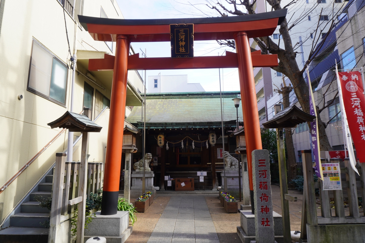 三河稲荷神社は、旧本郷元町一丁目、二丁目の鎮守。三河国稲荷山に鎮座していた稲荷神社の末社を徳川家康が御守りとして江戸入府の際に吹上に奉遷したのだとか。屋敷の中に祀られていた稲荷神社と違って、しっかりした構えの稲荷。鳥居から境内も最低限の広さがあってすっきりしています。