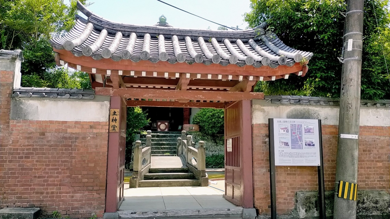 元禄4年(1691年)、唐船(中国船)の船頭たちの願いが許可され、当時中国人の居留地だった唐人屋敷入口に建立された土神の石殿が土神堂だそうです。