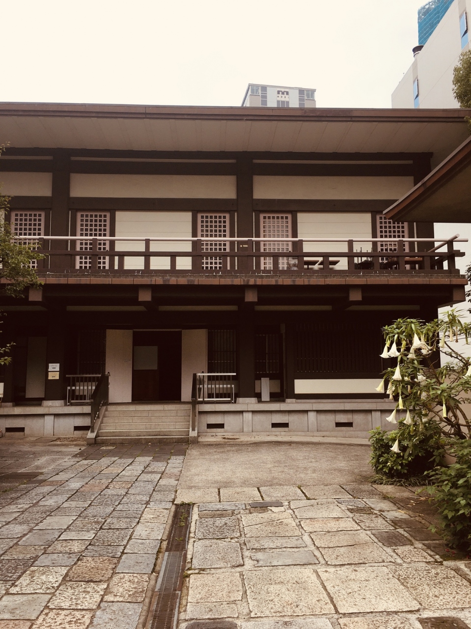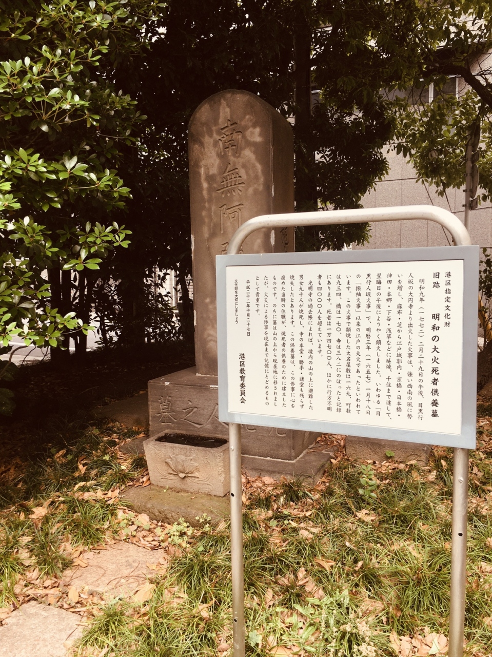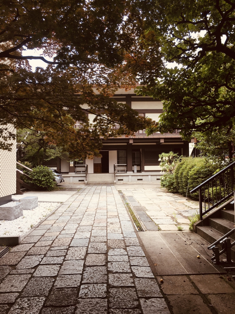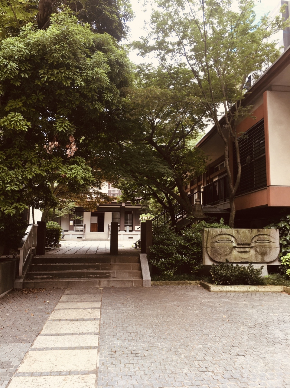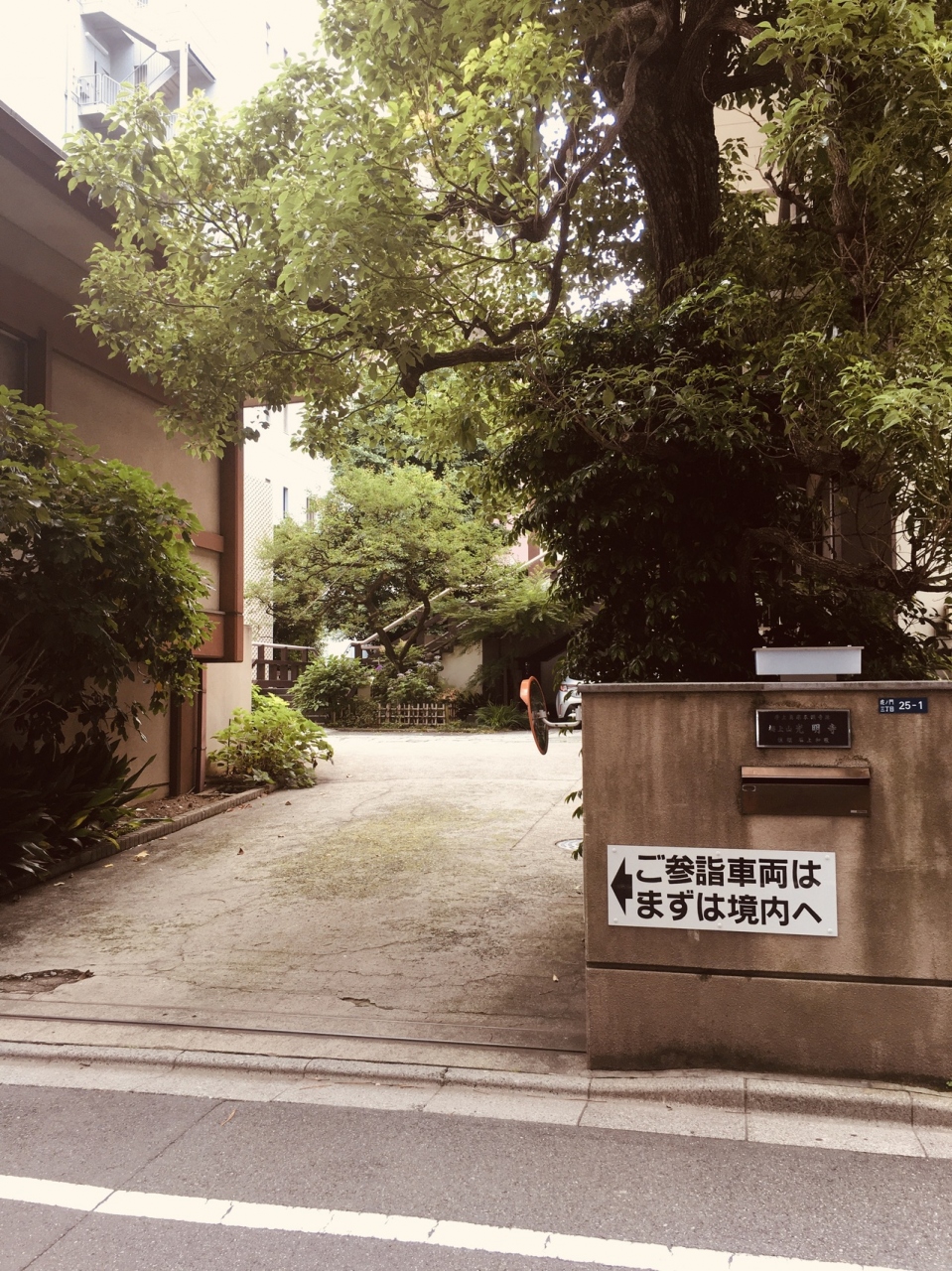 昭和の大火死者供養墓が境内入る手前に右側にありました。木々で覆われたところを抜けると境内の地面は舗装されていて、本堂は鉄筋コンクリートの寺らしくない横長の建物でした。裏側にも出入口があるひっそりとした寺でした。