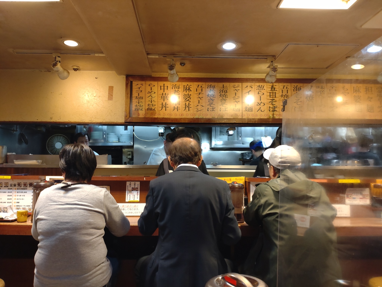 JR有楽町駅でも中央口、京橋口改札口から出てすぐのところ、交通会館前、ガード下にある中華料理店。カウンター席とテーブル席、更に奥にもテーブル席が。ランチ時の混雑必至で、相席のことも多い。カウンター席の上に貼られた木製のメニューはかなり年季が入っており、お店の歴史を物語ります。店員さんは中国の方も結構いて、店内は中国語のときも。しかし、厨房は日本の方なので、もちろん料理やその味は日本人向け。今回は回鍋肉定食をオーダー。キャベツいっぱいの回鍋肉は、豚肉もたくさん入っていて、また味噌の加減がちょうどよく美味。お茶碗にしっかりと盛られたご飯が進みます。また、定食には味海苔がつくのもまた嬉しいサービス。満足感のある定食も良いですが、麺も美味しそうでした。