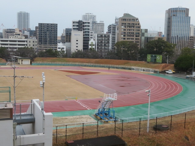 オリンピック予選の一つである福岡国際マラソンの舞台となった競技場です。瀬古さんや中山さんの雄姿は、目に焼き付いていて、ここだったんだなあと感慨深いものがありました。かつて日本が強かったマラソンスターが生まれた場所ですね。色とりどりのフィールドもテレビで見た通りでした。