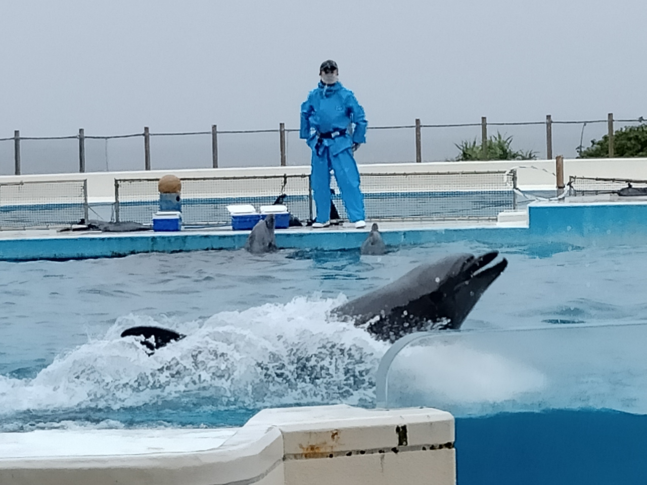 海洋博公園内で、1日数回開催されるイルカショーです。