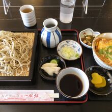 貴志園さんが運営しているお店で、手打ちそばがウリとのことで、ランチセット(玉子丼つき)を注文しました。
