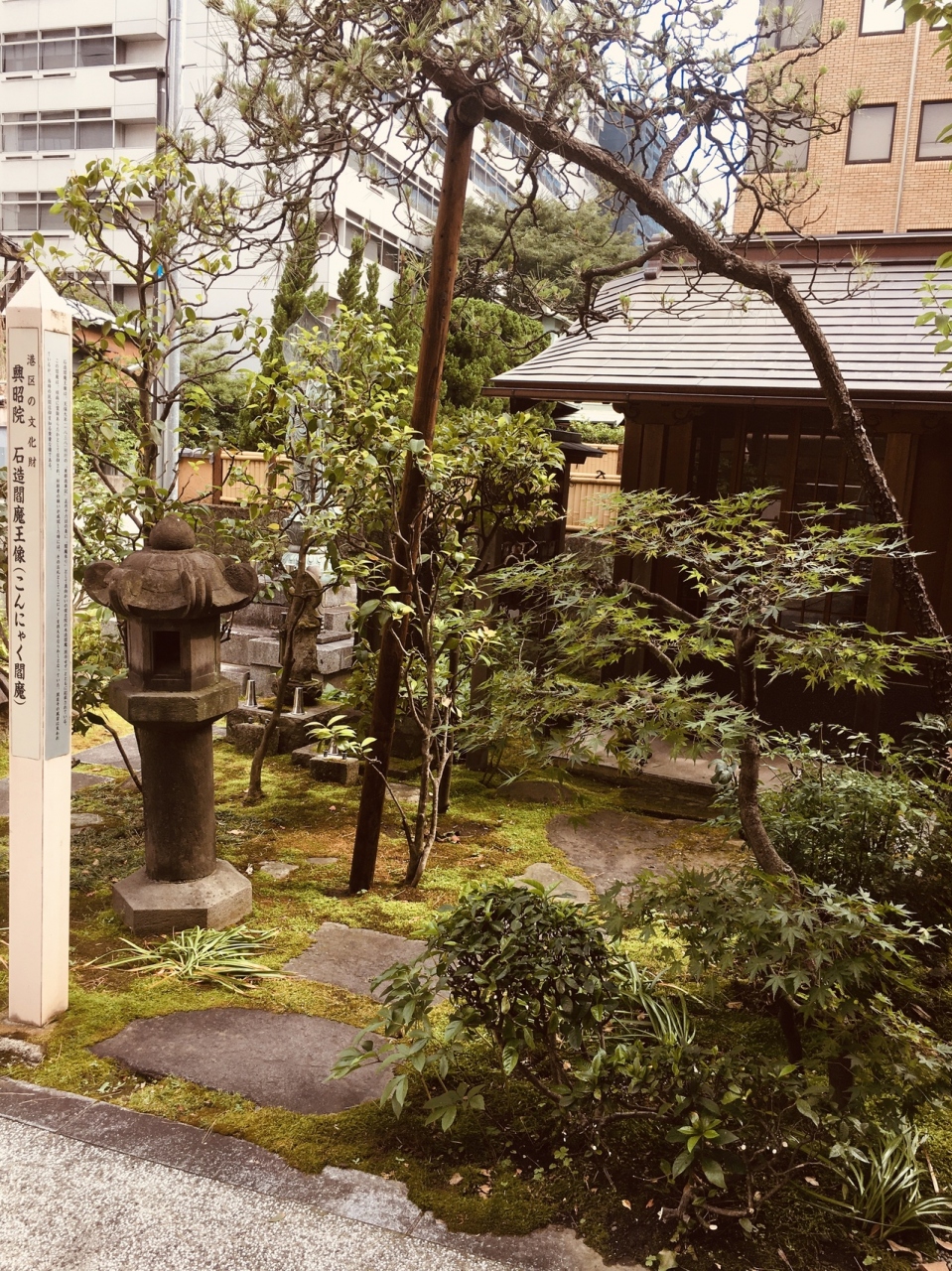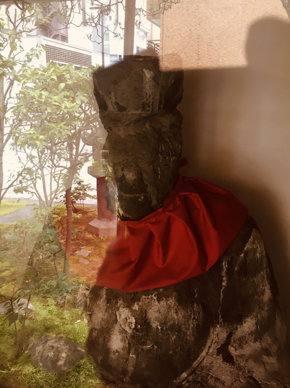 境内入り左側に杭の棒があり、その後方には小屋のような建物があり、中を覗くとガラスに反射して見にくかったですが、赤い前掛けをした顔が崩れた像があり、かなり風化していました。江戸時代は眼病に信仰河あった像です。