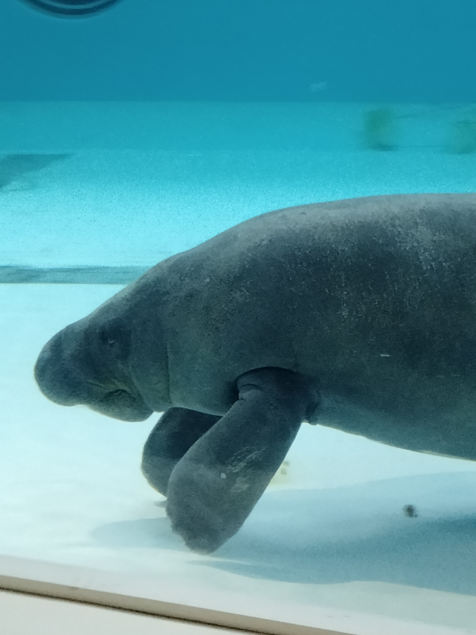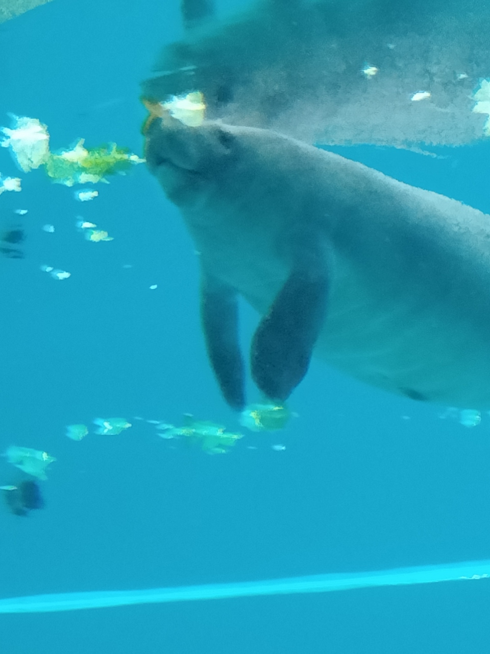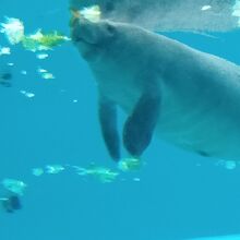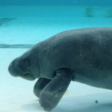 マナティーの生態に関する説明を読んだり、前ひれを使って、水底を歩行する様子も観察できたりします。