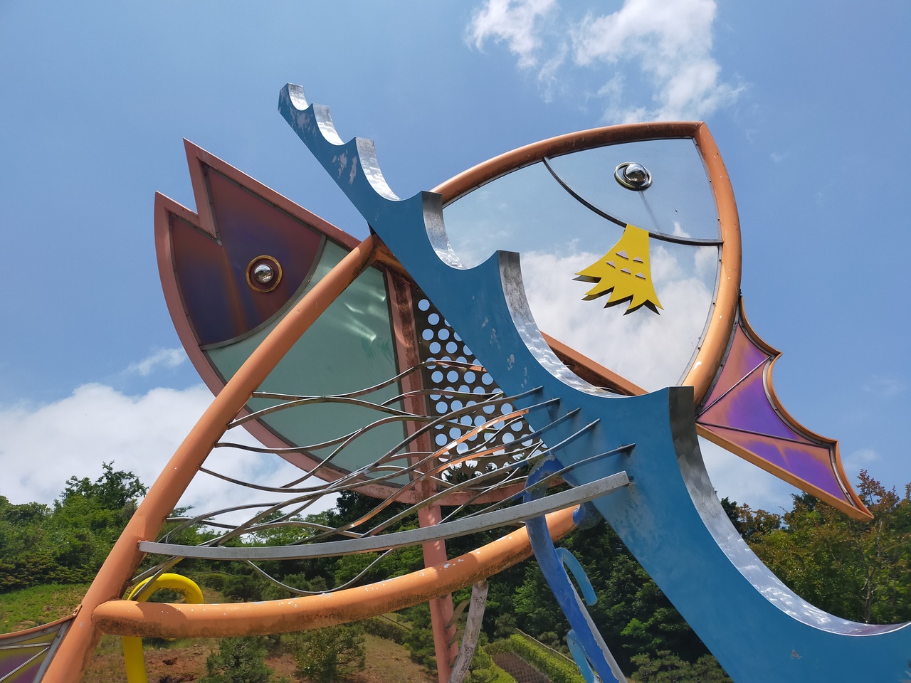 残念ながら行った時にはお土産屋さんは臨時で閉まっていました。普段はご飯屋さんが2件と土産屋さんが1件営業しているようです。展望台からは伊根湾と舟屋が一望出来ました。魚のモニュメントも可愛かったです。駐車場はかなり広いですが、下の方に停めると道の駅まで結構歩きます。もし土日などで舟屋の近くのコインパーキングが満車なら、こちらから歩けないことは無いと思います。かなり歩くので、夏場はオススメしませんが。