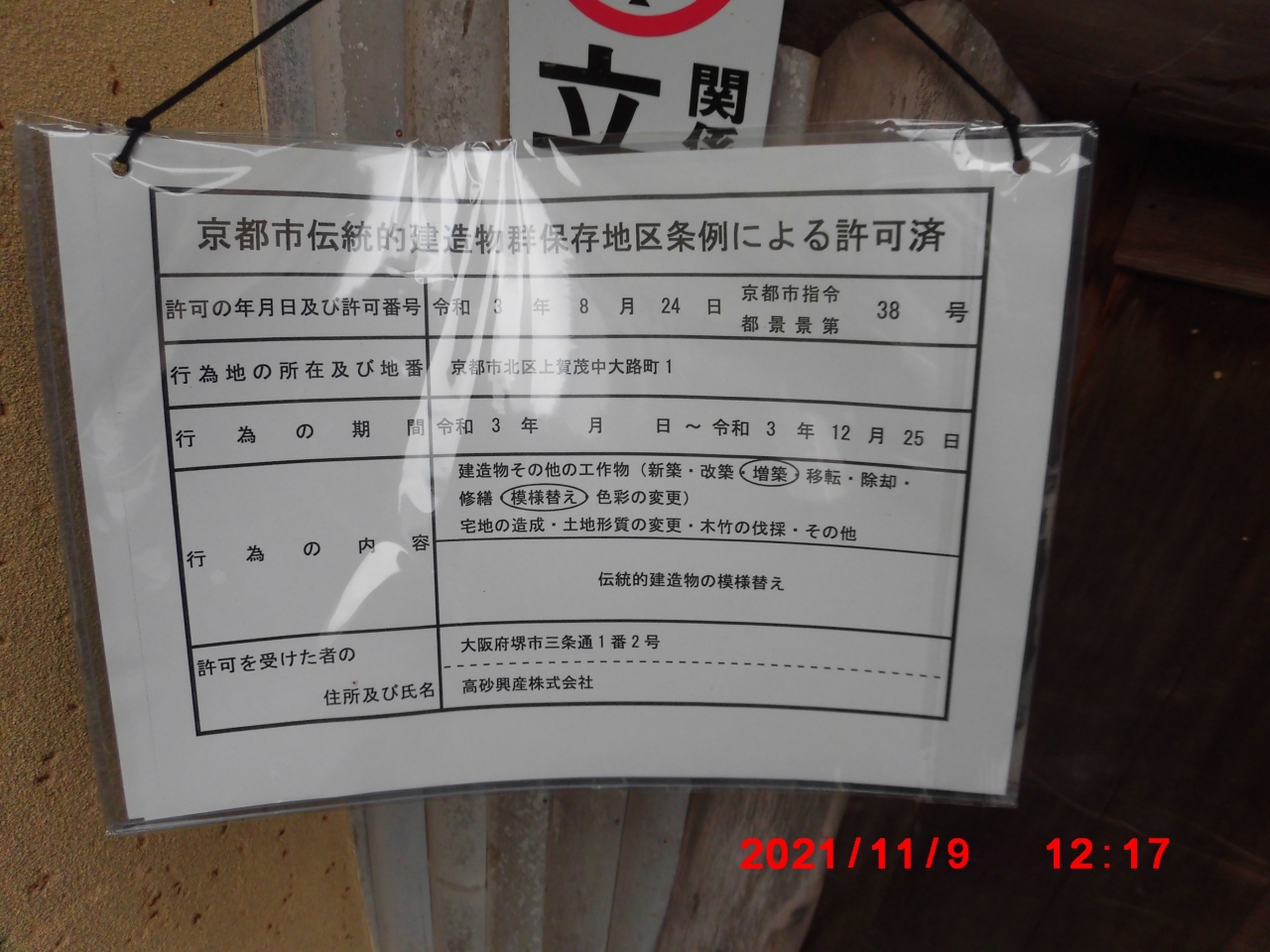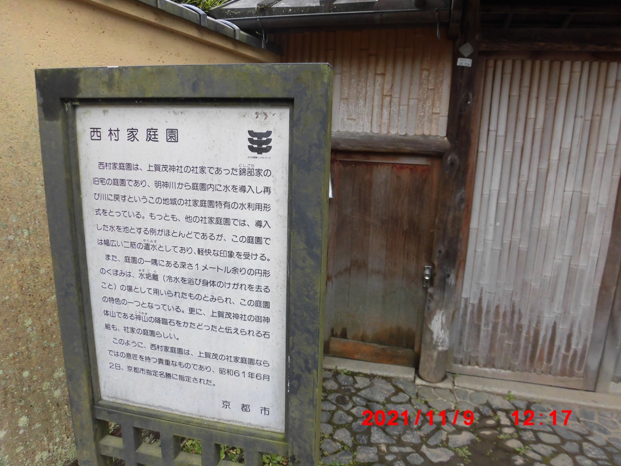 京都市観光で立ち寄りました。西村家別邸は、庭が有名だと言うことで訪問したのですが、閉まっていて「京都市伝統的建造物群保存地区条例による許可済」の許可証に「増築・模様替え」を2021年12月25日までと表記されてました。次回の京都旅行に期待です。