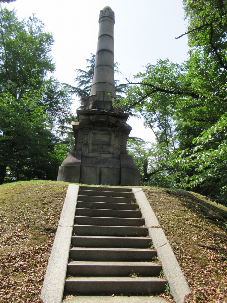 毛馬第一閘門の淀川側の木々に囲まれた公園に淀川改修紀功碑があります。