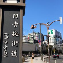 新宿駅西口にある標識です。大きめなので、歩いていれば見つかります。青梅街道は、東京と山梨・甲府を結びます。青梅を通るので、青梅街道という名前です。東京と甲府を結ぶ道には、甲州街道もあるため、青梅街道は甲州裏街道とも呼ばれます。