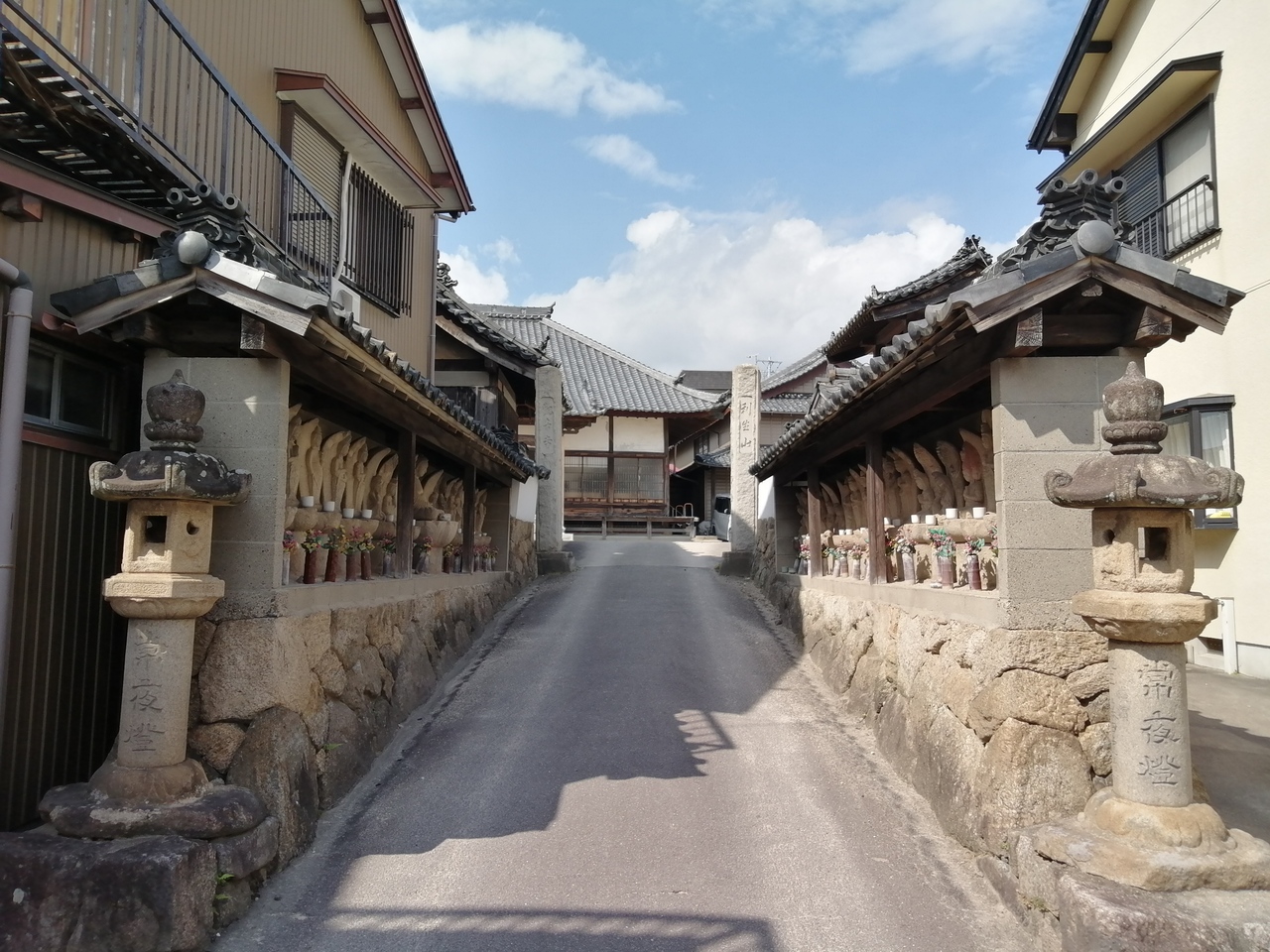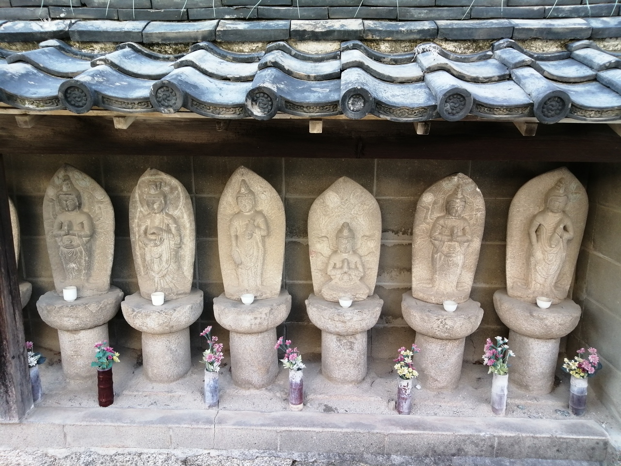 見どころは山門先の参道の両脇に並んだ観音様。なんとも言えぬ素敵な雰囲気です。素朴な像ですが皆穏やかな表情をしています。きれいに掃除されて大切に祀られているのがわかります。