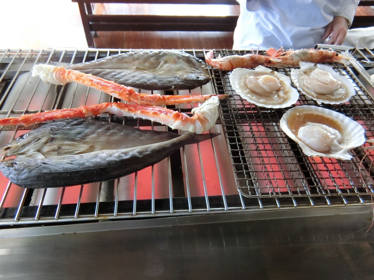 ツアーのランチで行きました。海鮮を自分て焼いて食べるお店です。帆立1個、海老1匹、大きな蟹の足2本、魚、おにぎり2個がつきます。おにぎりは2つとも梅干しが入っていました。海鮮は戦線でとてもおいしかったです。ツアーの食事の中で、ここのお店が一番おいしかった。