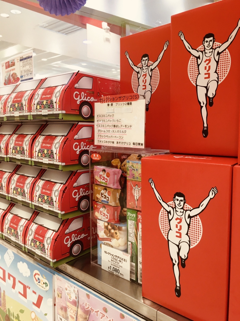 カルビー、森永製菓と同じ敷地にあり、ポッキーの種類が多く、通常サイズより大きなものも置いてありました。ビスコや自動車の箱型のお菓子も置いてあって、大人から子どもまで楽しめる店です。店内の奥のエリアがグリコです。